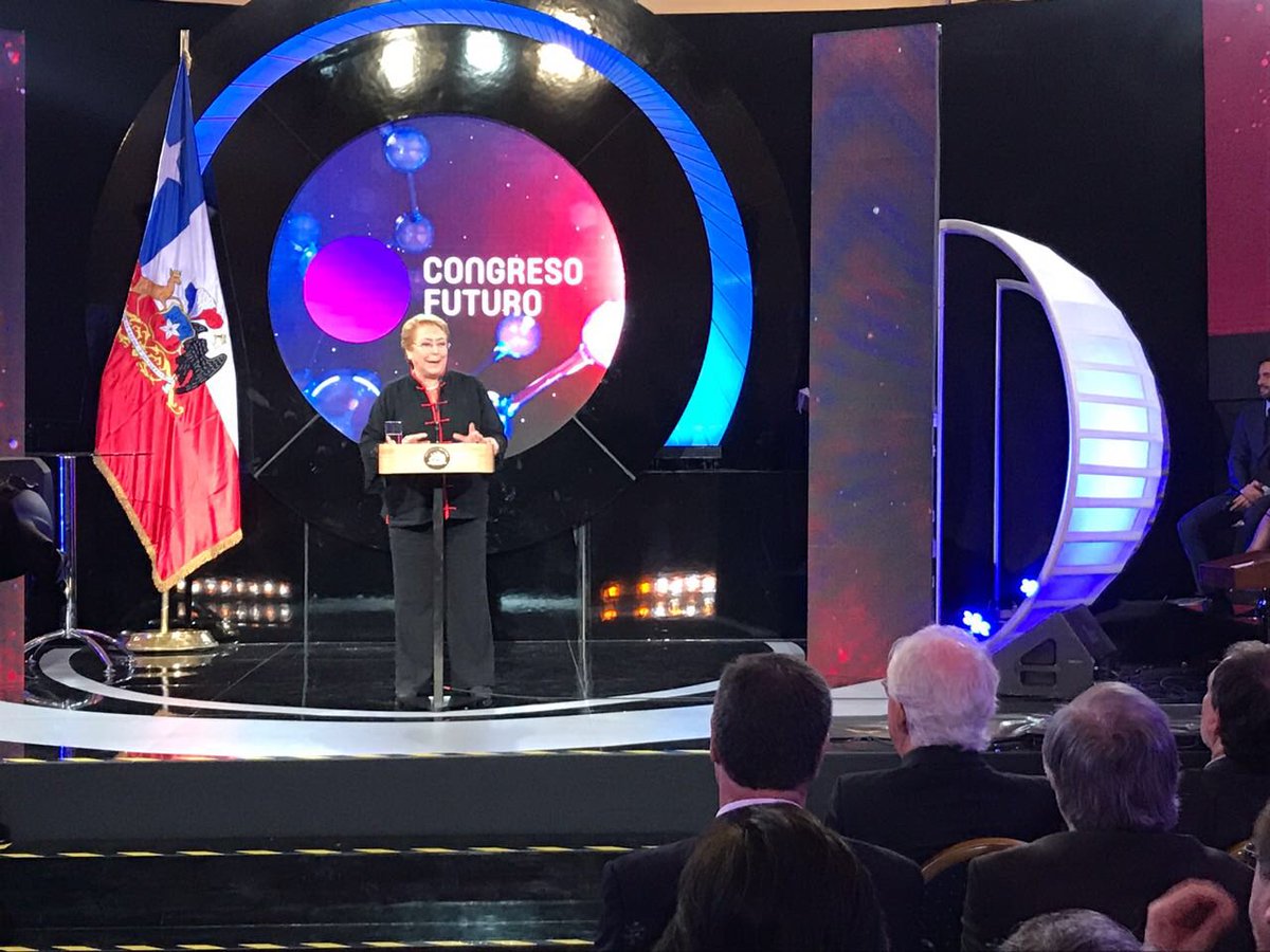 Ahora: Pdta. @mbachelet participa en la ceremonia de inauguración del #CongresoFuturo2018, donde científicos y humanistas destacados exponen sobre las implicancias y posibles soluciones de las problemáticas del futuro.pic.twitter.com/7LPfs3M1Hq
