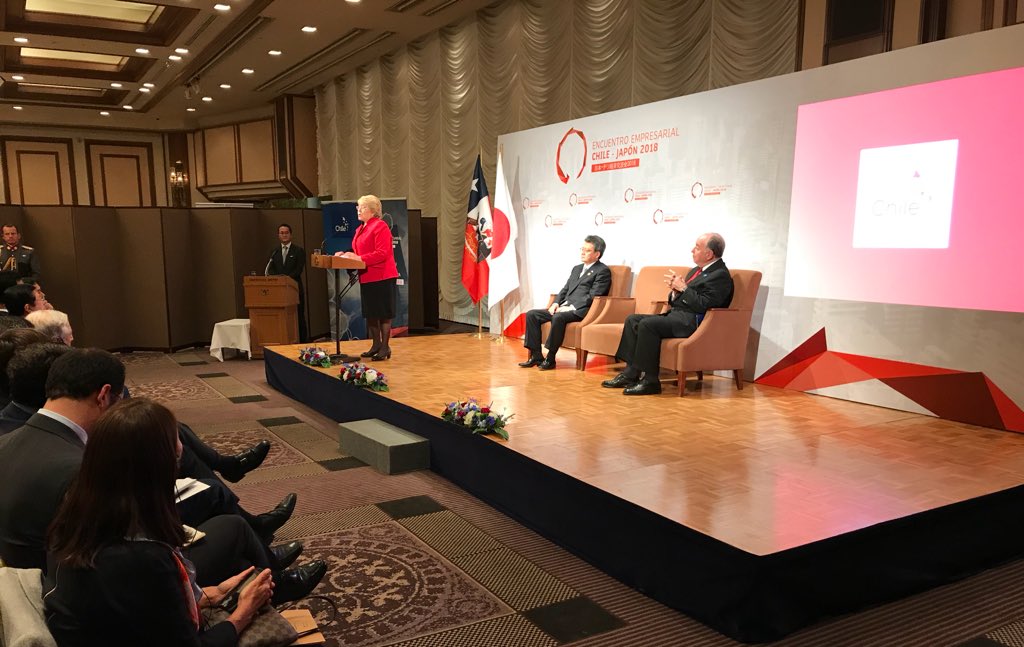 Ahora: Pdta. @mbachelet participa en Encuentro Empresarial Chile-Japón. #PdtaEnJapónpic.twitter.com/IyftafuWHw