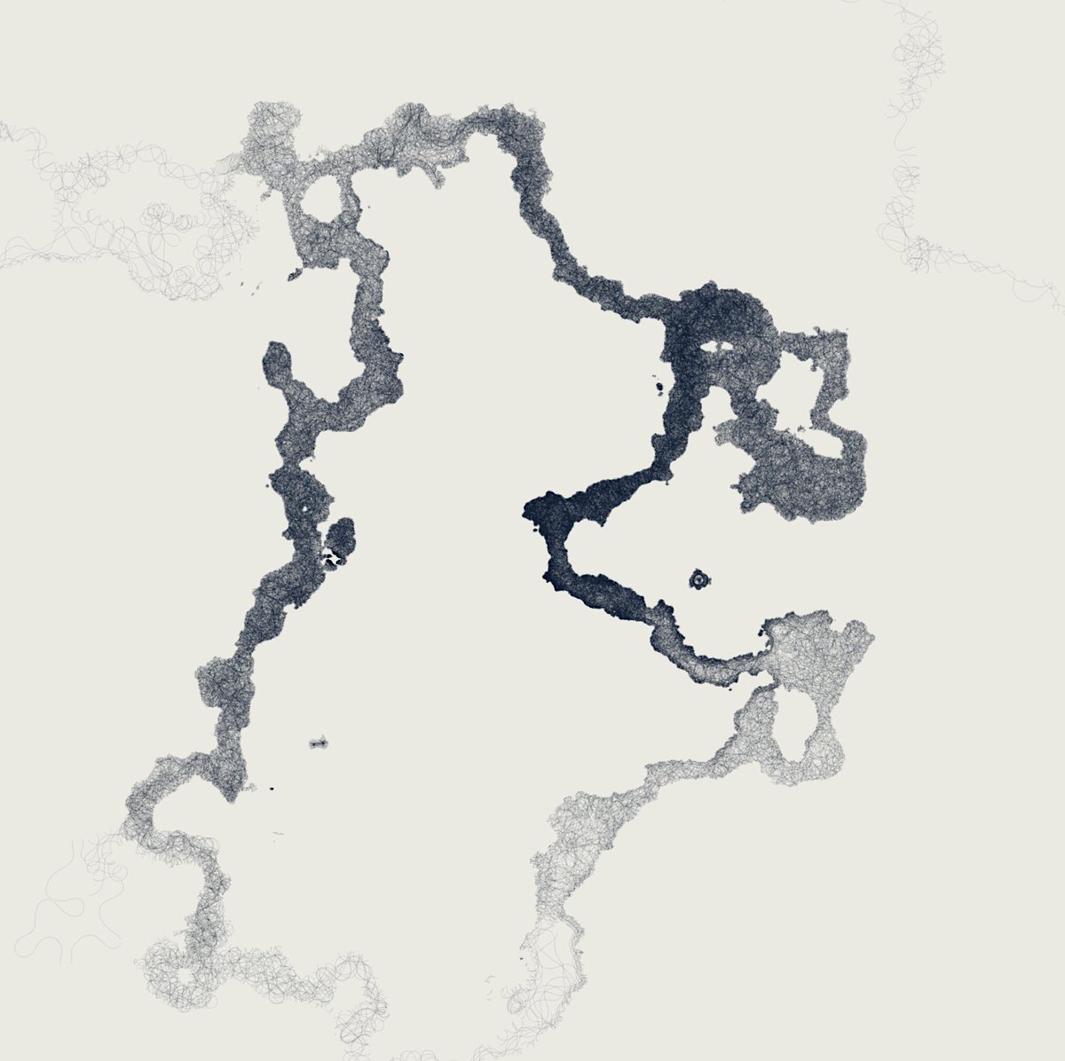 Small, squiggly lines creating something that looks like watercolour stains.