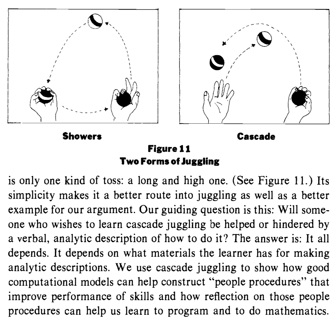 On the off-chance you aren't familiar, you may appreciate pp. 105–113 of _Mindstorms_ http://mindstorms.media.mit.edu/ on the relationship between juggling and computer programming…pic.twitter.com/7VAPKpVdio