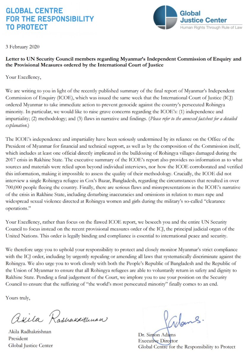 #Myanmar ICOE report,@GCR2P &@GlobalJusticeC call on UN Security Council members to focus on the provisional measures order of@CIJ_ICJ to take immediate action to prevent#Rohingya genocide https://www.globalr2p.org/publications/gjc-gcr2p-unsc-letter-myanmar-feb-2020/ …pic.twitter.com/WZBFd1dm7X