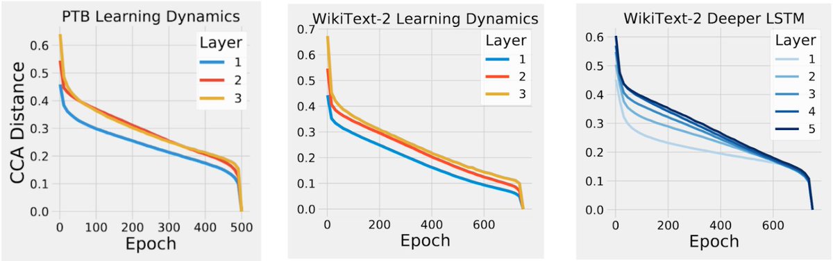 Moving to RNNs, we found that like CNNs, RNNs exhibit bottom-up convergence dynamics, in which layers close to the input converge to their final representations earlier in training than layer close to the output.pic.twitter.com/JBFbka83zl