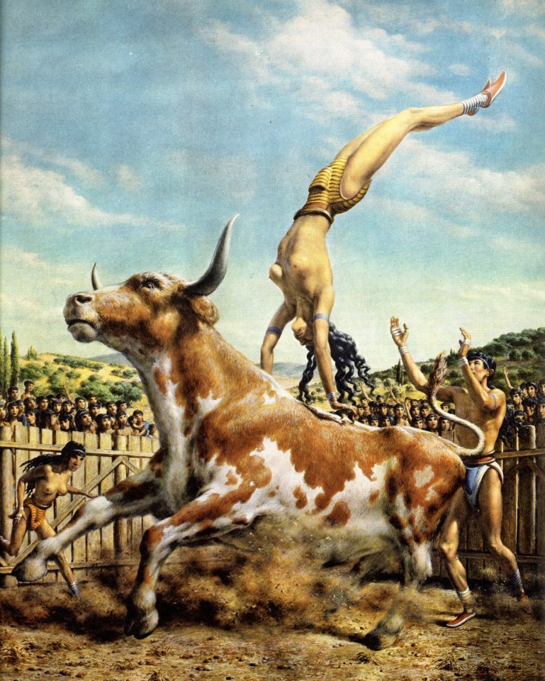 Bull-leaping. Illustration by Rudolph F. Zallinger.pic.twitter.com/3usXxbph5J