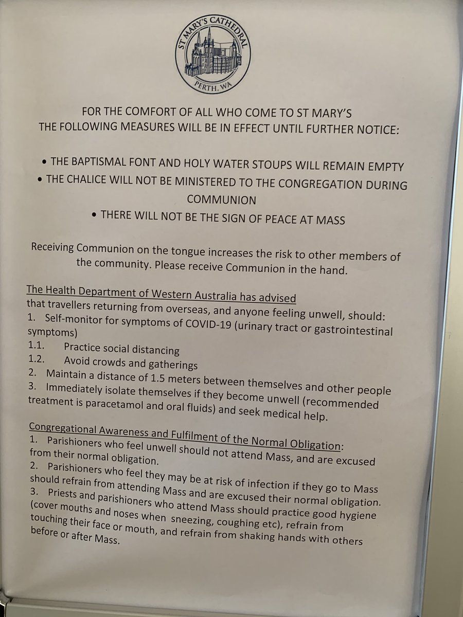 Strict measures are in place at #Catholic cathedrals across #Perth...in response to the unfolding #Coronavirus threatpic.twitter.com/XuY6JUZ6hf