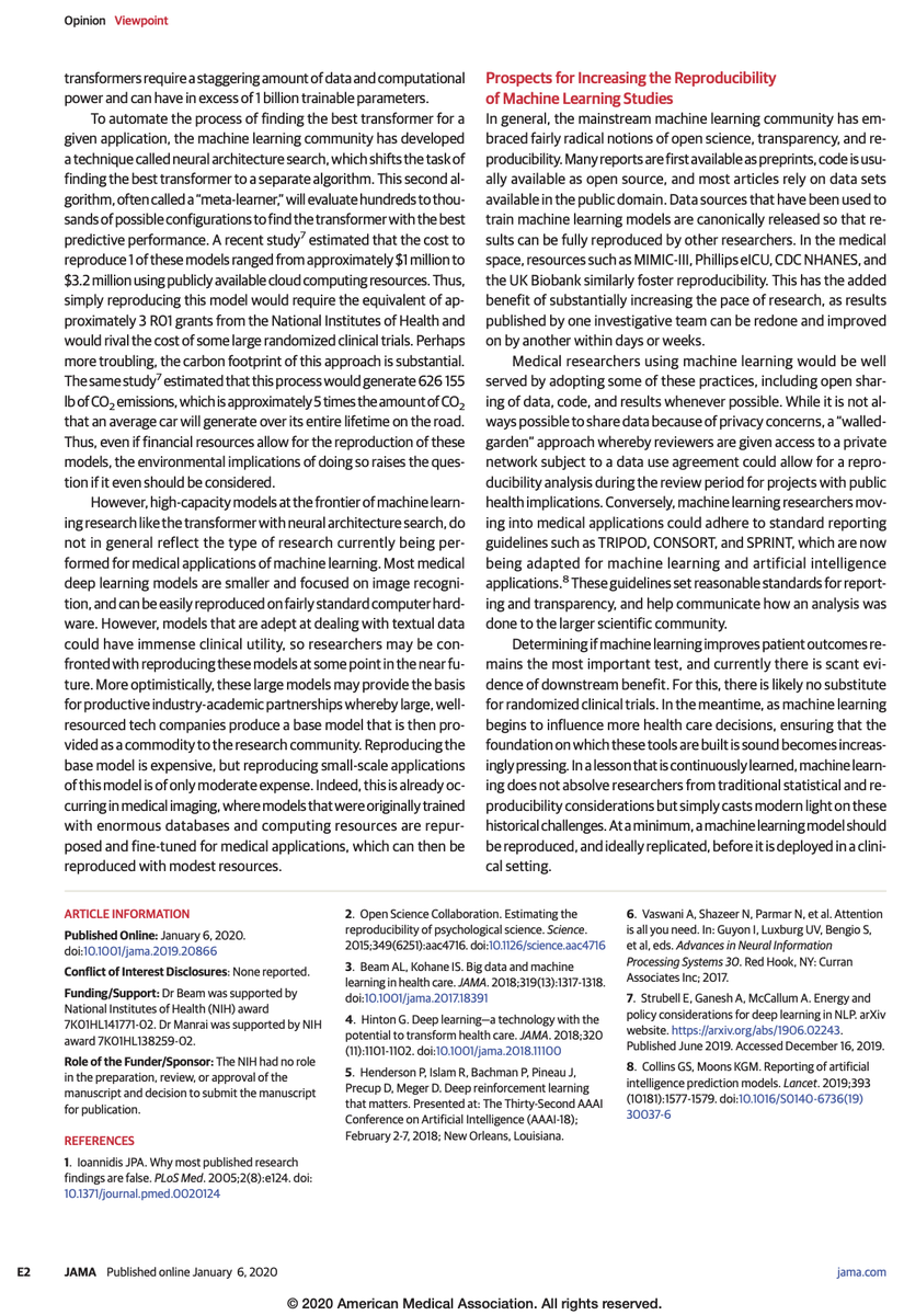 Patient outcomes and the reproducibility of machine learning have nothing in common. You do not treat machines but unique entities.