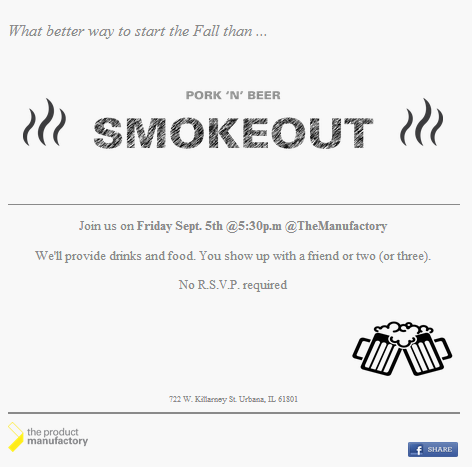 Don't forget to come to the Beer N Pork party, Friday Sept. 5th, at 5:30pm. Ohh yeah, Bryan and Mercedes are taking the