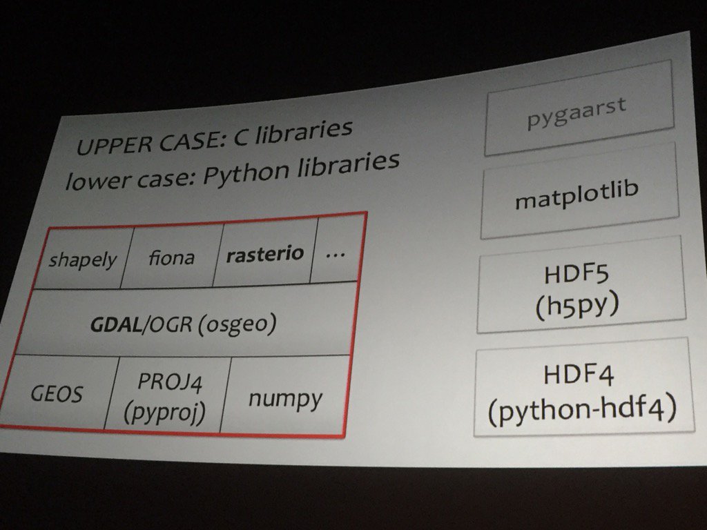 Ecosystem of tools from Python perspective (shoutout to @sgillies) #openvisconfpic.twitter.com/p1bG1E8p9P