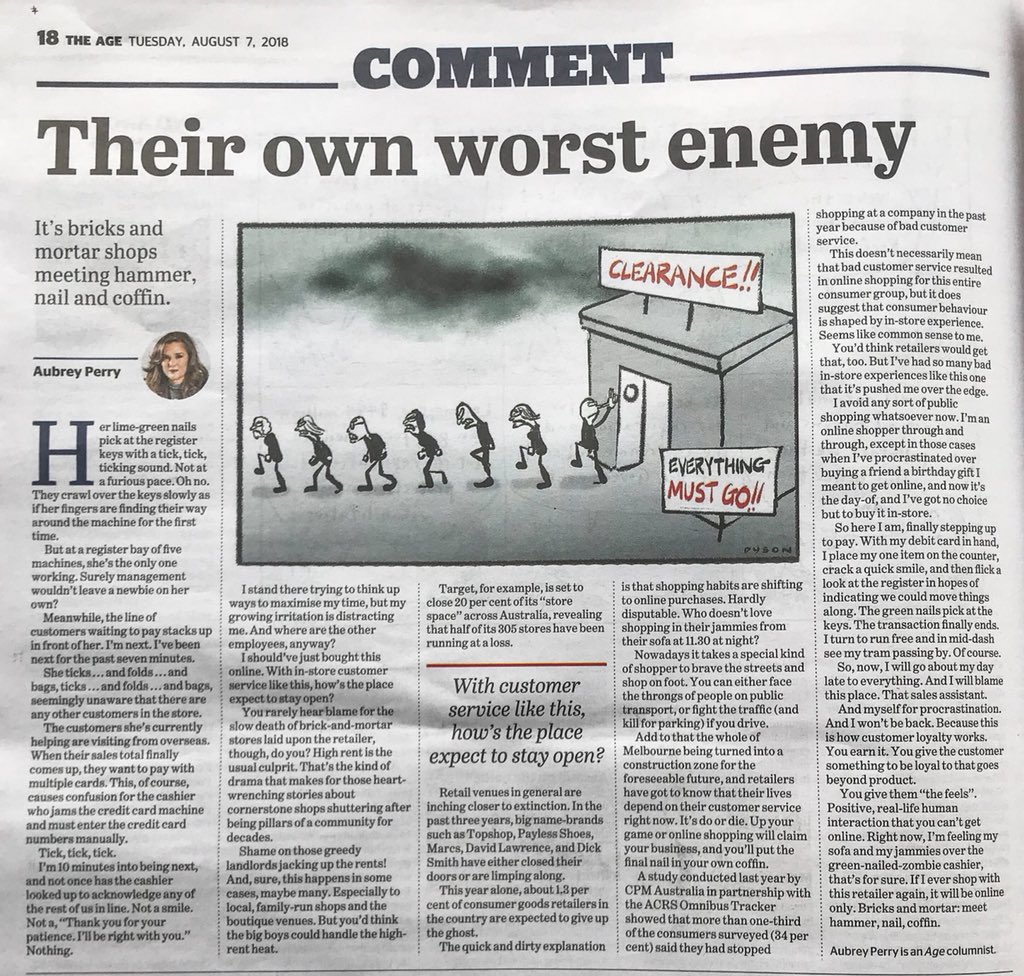 Retail locations are on their dying breath unless they up their game. My piece in today’s Age