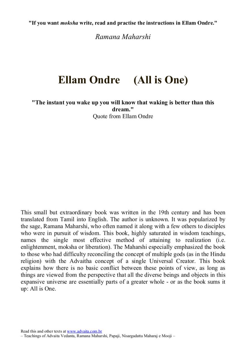 There is a old book called எல்லாம் ஒன்றே (All is one) small book must read one