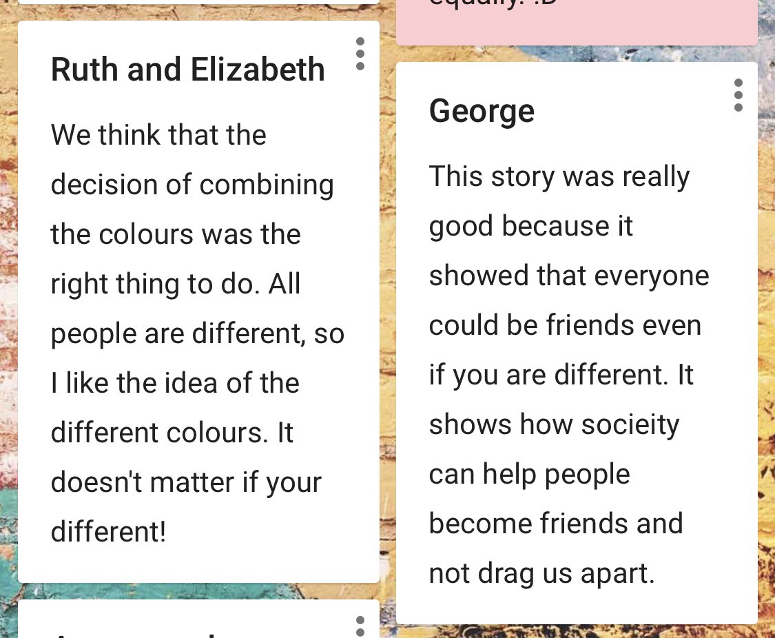 Year 5 have been listening to the story ‘Mixed’ by Arree Chung and reflecting on the message of acceptance and unity. We have had so many thoughtful responses from the children.