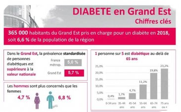 #GrandEst : 365 000 habitants du Grand Est pris en charge pour un diabète en 2018, soit 6,6 % de la population de la région !