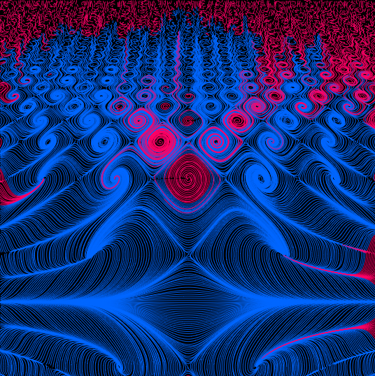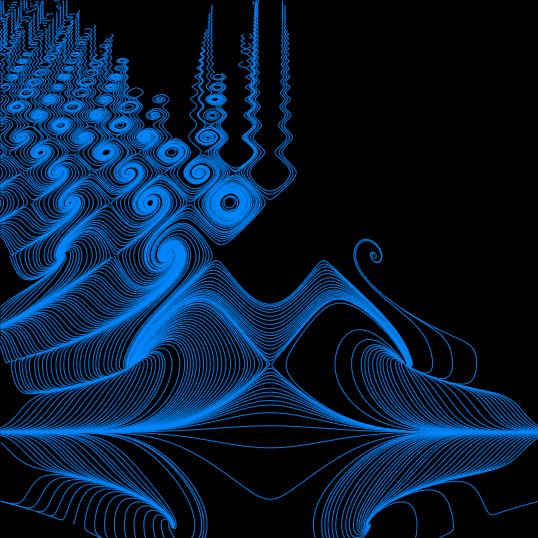 URL to recreate this one (+ omg if you switch the colour while it's still drawing it only changes the lines it's already drawn and you can get TWO COLOUR PLOTS lol) https://msurguy.github.io/flow-lines/#?sd=0.042&yf=sin%28x*%28y%2B3%29%29&ts=0.046&sm=0.05&seed=2155&dt=0.001&xf=cos%28y%20%2B%20exp%28y%29%29&color=%230066FF&bg=%23000000&sw=1 …pic.twitter.com/k9gFezfnO5
