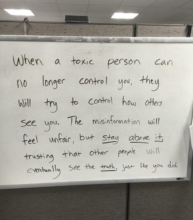 When a toxic person can no longer control you, they will try to control how others see you. The misinformation will feel unfair, but stay above it, trusting that other people will eventually see the truth, just like you did. Be brave, be honest, be dignified and stand tall.pic.twitter.com/TjaxhyS6wy