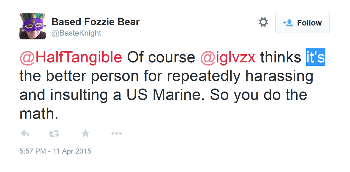 NotYourShield: "You called out Slade's horrible behavior! You hate US Marines!" (+Bonus transphobia) #StopGamerGatepic.twitter.com/0LgMfmumz3