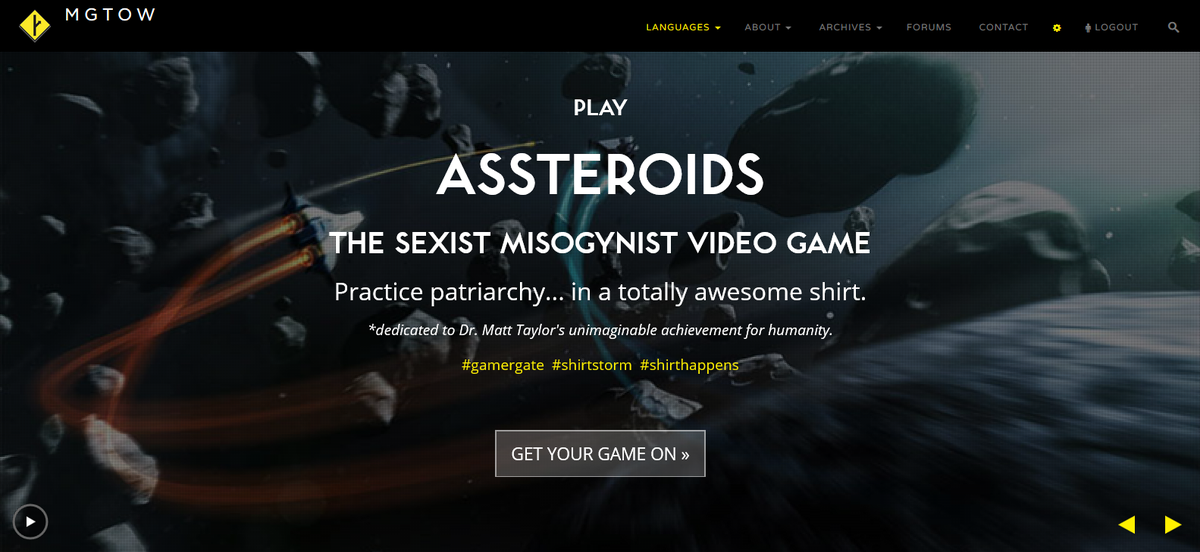 Play Assteroids, the sexist, misogynist video game. Hashtag GamerGate.pic.twitter.com/XI8TqXQBcH