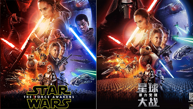 Chinese version of #StarWars poster noticeably downplays the only black actor: http://adweek.it/1NLY3mC  pic.twitter.com/F9ceQxzitp