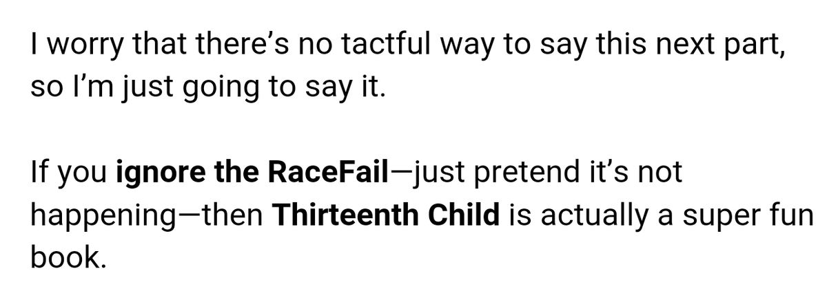 @benjanun_s @BootlegGirl @asymbina this is the book, 1st 2 reviews mention RaceFail https://www.goodreads.com/book/show/5797595-thirteenth-child …