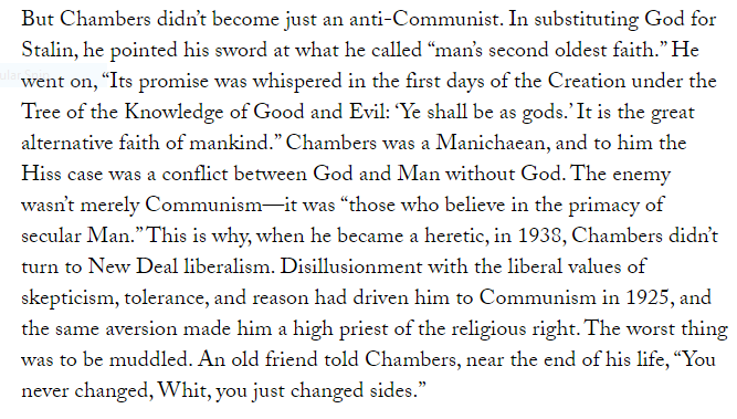 Last night I linked this excellent George Packer essay in the New Yorker about leftists who became right wingers: http://www.newyorker.com/magazine/2016/02/22/why-leftists-go-right …