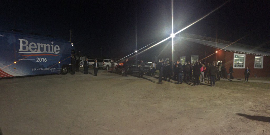 .@BernieSanders waits in bus while @HillaryClinton finishes speaking at Orangeburg fish fry. #SCPrimary paths cross. pic.twitter.com/0c23YJkZ2C