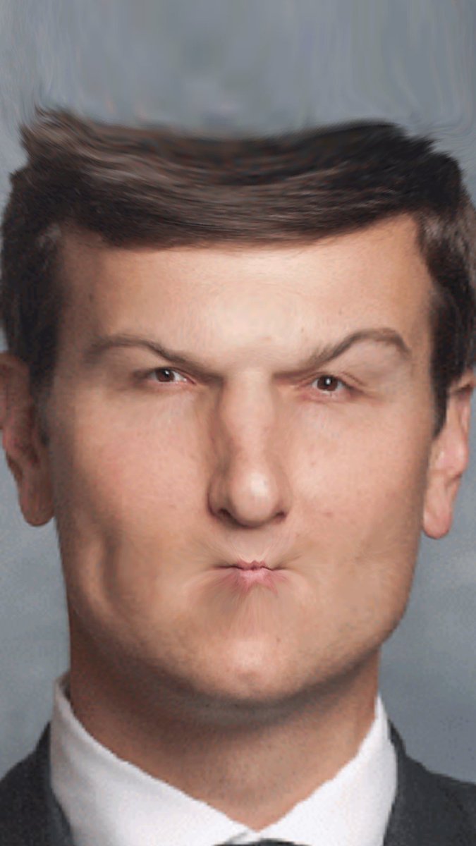 I still think he refuses to smile because his jowls have a flappy field day when he does.
