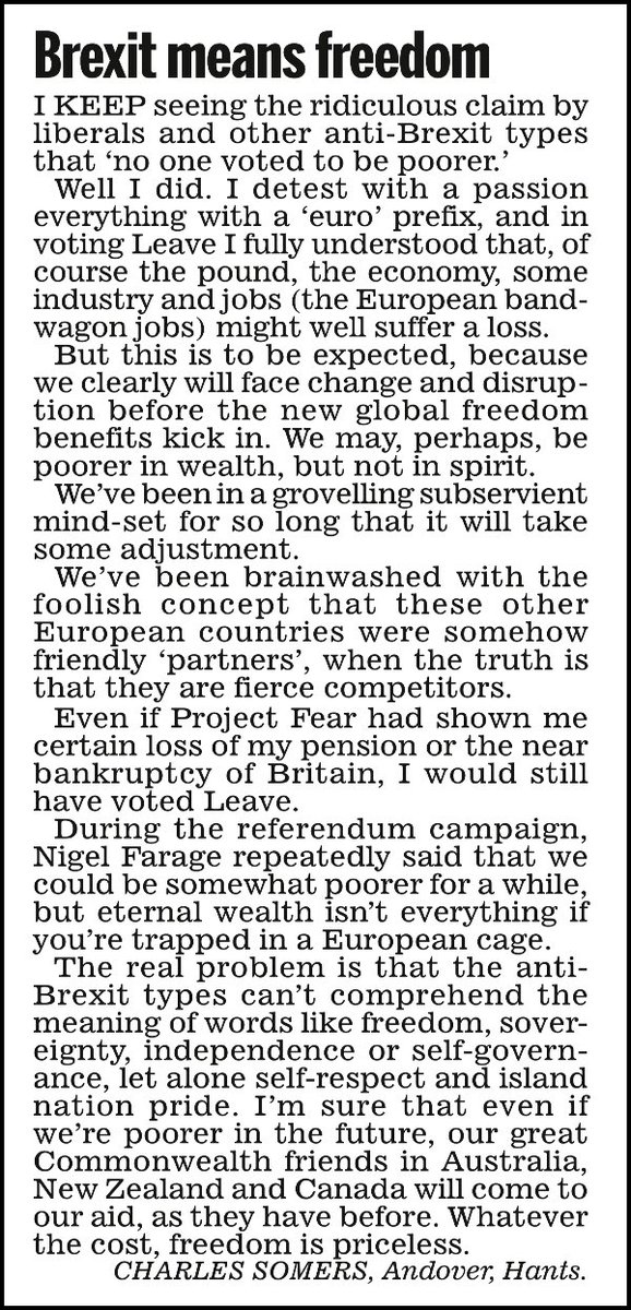 "No-one voted to be poorer? Well I did! I voted for the pound, the economy, industry & jobs to take a hit. And I'm proud. I'd do it again." pic.twitter.com/7siLoqEIQL