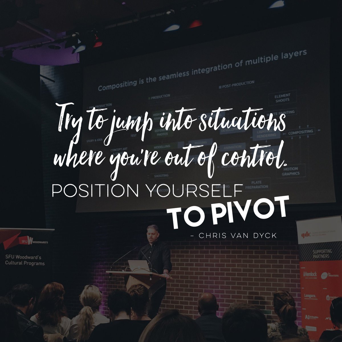 "Try to jump into situations where you're out of control. Position yourself to pivot." —Chris van Dyck