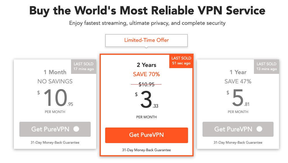 @PureVPNcom attempting to pull off the same trickery: the "last sold" times are randomized, and the "Limited-Time Offer" is always claimed to have been sold most recently (secs v/s mins). https://www.purevpn.com/order-vpn https://twitter.com/OphirHarpaz/status/1184486445039411201 …pic.twitter.com/Pw0BlSmFec