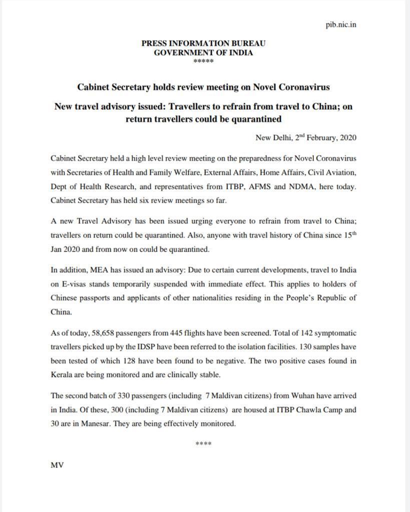 India Against Coronavirus: Government has sought to protect the nation from the novel coronavirus outbreak and has temporarily suspended E-visas from China. In addition, citizens are encouraged to take precautions and are cautioned against travelling to China.pic.twitter.com/4SxB49Zx6R