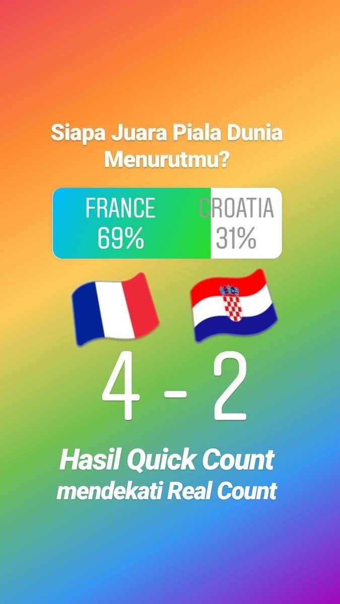 #worldcupfinal mendekati. Jangan tanya margin of error dan sampel ya. Yang penting#FRA menang. Hehepic.twitter.com/HuCSLePIOz