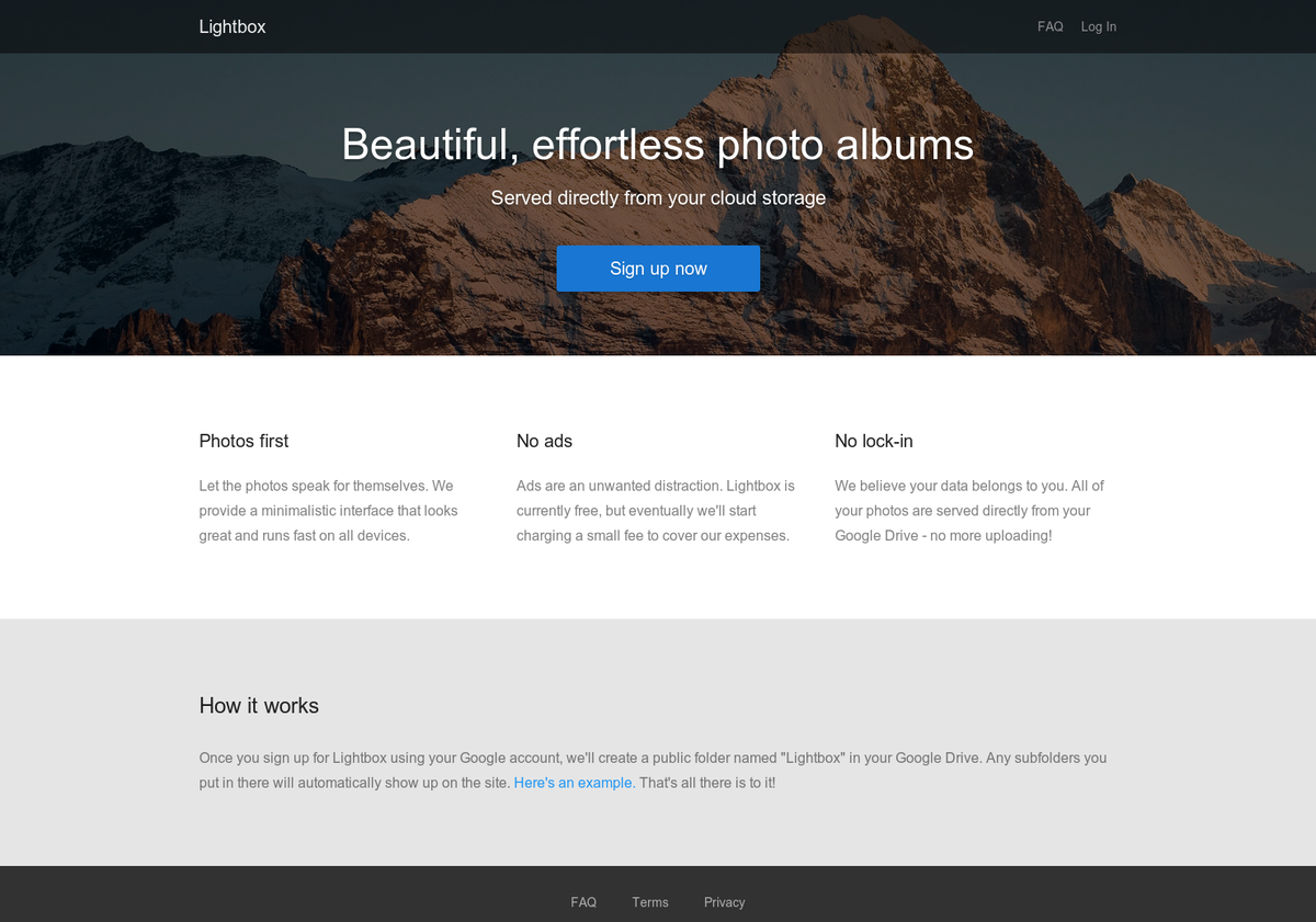 Lightbox: Your Google Drive photos made into a beautiful album http://www.producthunt.com/posts/lightbox via