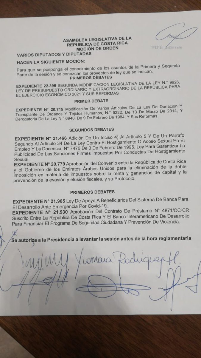 Aprobado en #PrimerDebate el Exp. 22.395 Segunda Modificación Legislativa De La Ley N.° 9926, Ley De Presupuesto Ordinario Y Extraordinario De La República Para El Ejercicio Económico 2021 Y Sus Reformas.