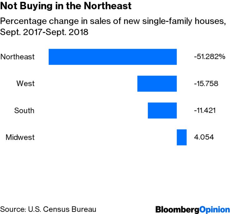 The elimination of State and Local tax deduction combined with higher mortgage rates have combined to clobber the housing market in the Northeast. No one could have known. https://www.bloomberg.com/view/articles/2018-10-25/housing-market-is-tanking-in-the-northeast …pic.twitter.com/HbiqANiBa6