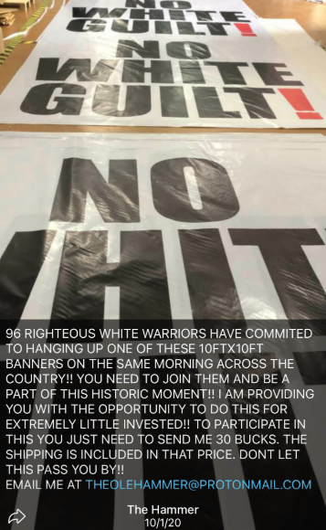 This morning, a coordinated white supremacist banner drop occurred across the country. It was organized by telegram Nazi Christopher Pohlhaus aka "The Hammer".