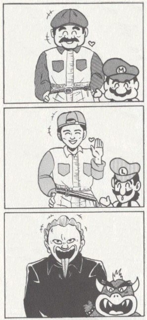 The film versions of Mario, Luigi, and Koopa alongside their original video game counterparts. From the KC Deluxe manga.pic.twitter.com/WjDZjIHRB3