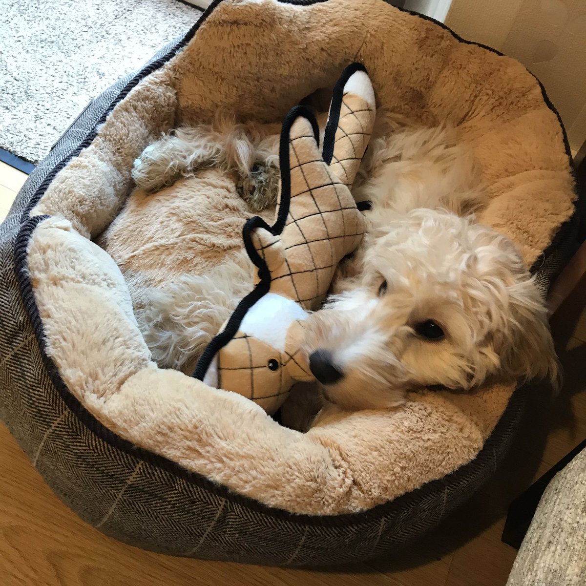 We went to @AldiUK to get Charlie a new bed for the sitting room. Think it’s a success