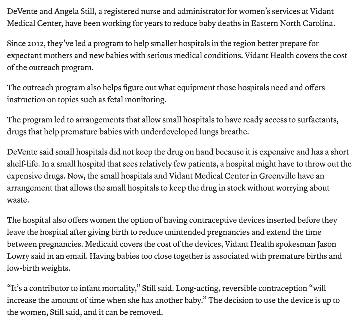 Fam in the news! My mom has been doing really important work to improve infant mortality rates in rural parts of eastern NC. I'm so excited to see her work included in this piece from