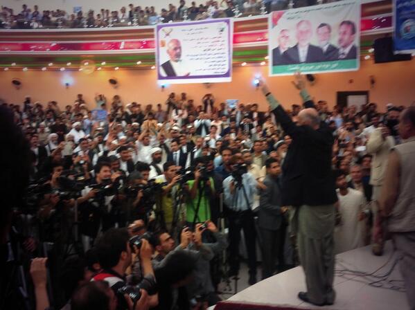 Dr. Ghani has come to the podium; people are up on their feet. #Heratrallypic.twitter.com/ZrEz544kIT