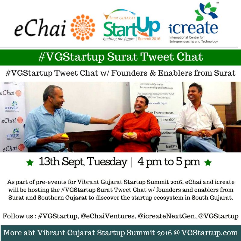 #VGStartup Surat TweetChat w/ Founders n Enablers frm Surat w/@icreateNextGen & @vgstartuppic.twitter.com/VmbqBSEYMt