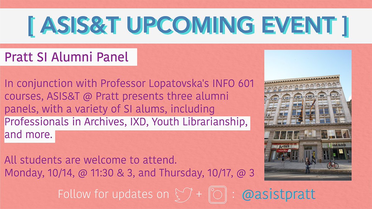 @prattischool Alumni Panels were a success! If you missed them, come to our last one on Thursday at 3pm in Room 610