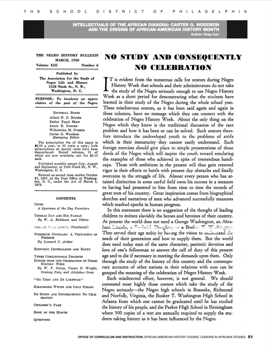 Day 1: A reminder from #CarterGWoodson that February is for showing what has been learned in YEAR ROUND study of African people and NOT for "race problem" talks. Download the entire Woodson lesson from our@PHLschools curriculum here: https://static1.squarespace.com/static/51e1f764e4b0180cf3bcdc25/t/52e6f92de4b0abf2d1ba617f/1390868781275/Greg+Carr+Lesson+on+Carter+Woodson.pdf …pic.twitter.com/hPep4pMfS0