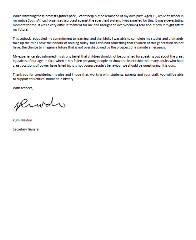 The climate emergency is the defining human rights issue for youth today. It will shape their lives in every way. That's why I've written to more than 30,000 schools around the world urging them to let pupils join the historic climate strikes on the 20th & 27th September.pic.twitter.com/ATJamTVpe0
