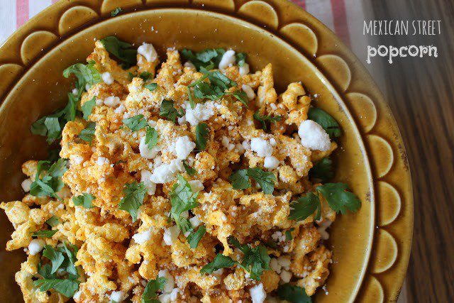 football parties are greatly improved with good snacks like mexican street popcorn!