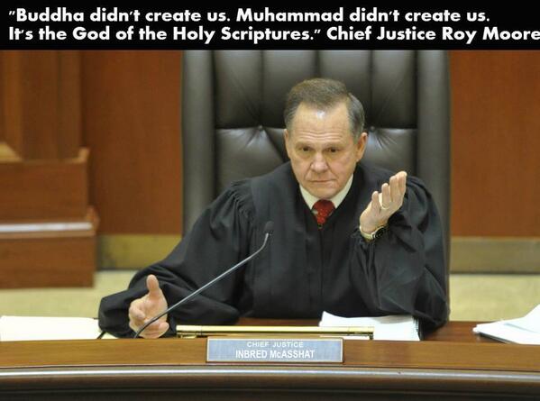 Alabama Chief Justice decrees only Christians protected by the constitution. I fixed his name plate.pic.twitter.com/p8984KdI5q