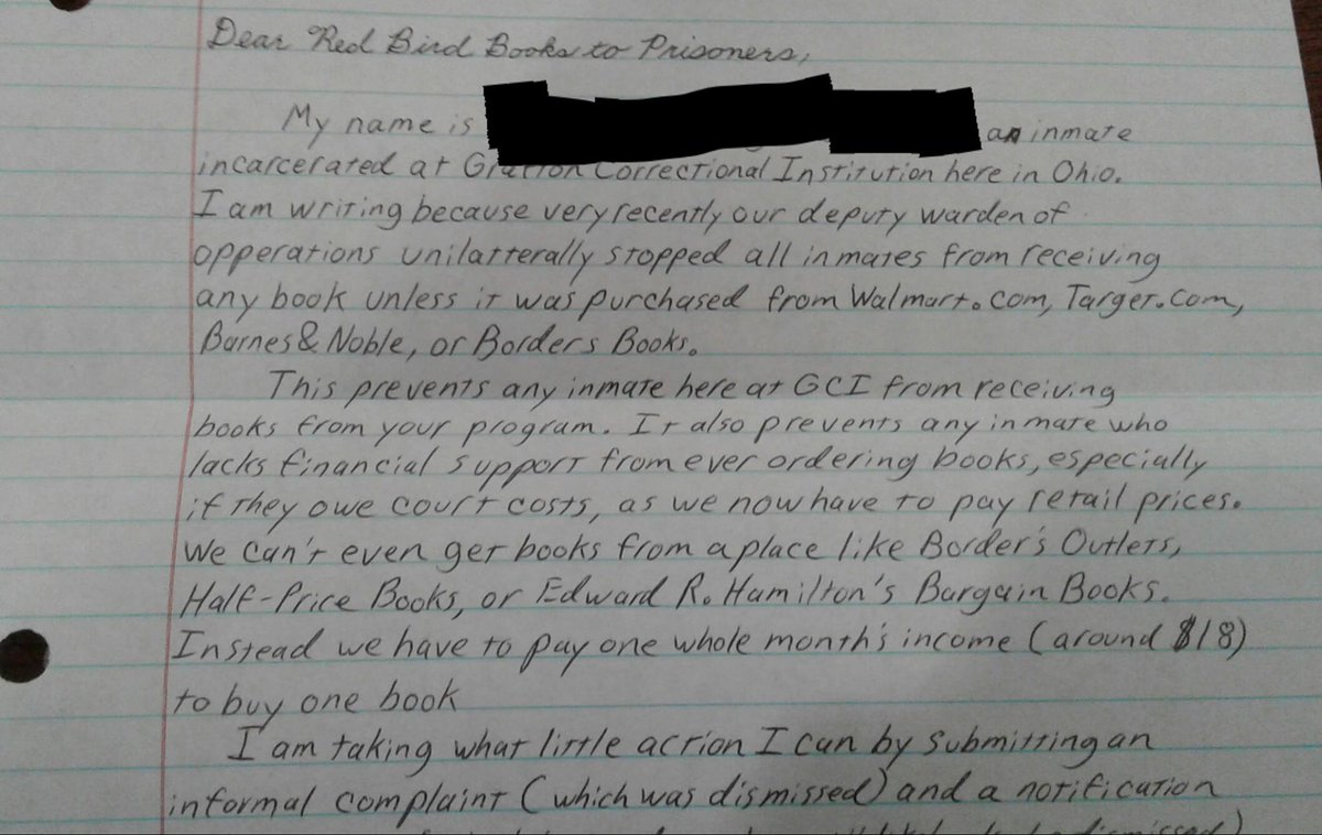 In no universe is this legal. @DRCOhio's "policy" that only books purchased from @Walmart, @Target, @BNBuzz, etc are permitted is an affront to everything that "correctional institution" represents. Governor @JohnKasich must act. @Jim_Jordan @RepBobGibbs @RepMarcyKapturhttps://twitter.com/Anarchy_Dog/status/964654854873518080 …