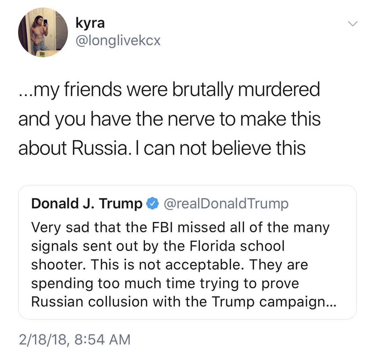 Parkland students are hammering @realDonaldTrump for his Russia tweet. A few examples:pic.twitter.com/29bpUIILZe