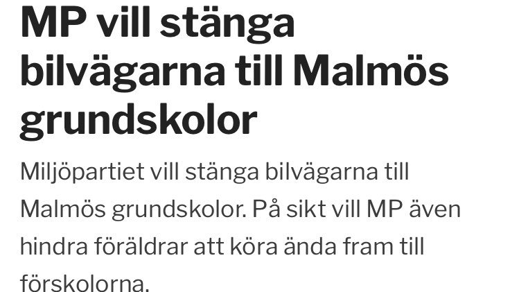 Nu gör du sport av att spela dum. Först halmdocka och sedan detta. Förslaget, som kommer från MP Malmö, handlar om deras grundskolor. I framtiden ev. också förskolor. Handlar såklart då om att man får parkera en liten bit bort istället och gå den sista biten.