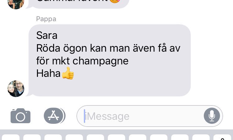 Berättar för mina föräldrar att jag haft röda ögon på sistone och nu varit hos doktorn och fått allergimedicin. Pappa har ett eget förslag till varför mina ögon varit röda