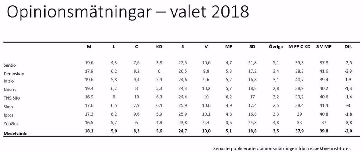 Facit ikväll. Enligt opinionsinstituten #val2018pic.twitter.com/Yb0AV946RP