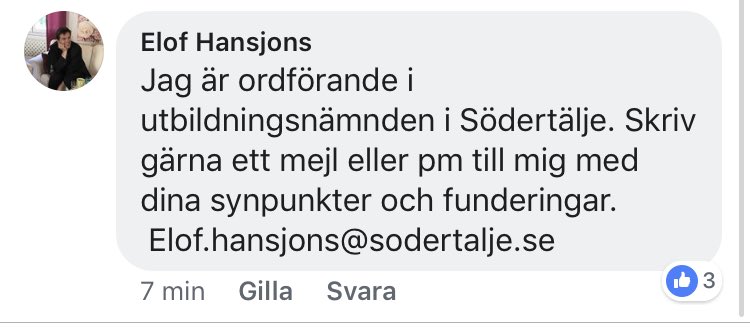 Är imponerad av hur kommunalrådet @elofhansjons hanterar sociala medier och kontakten med väljarna.
