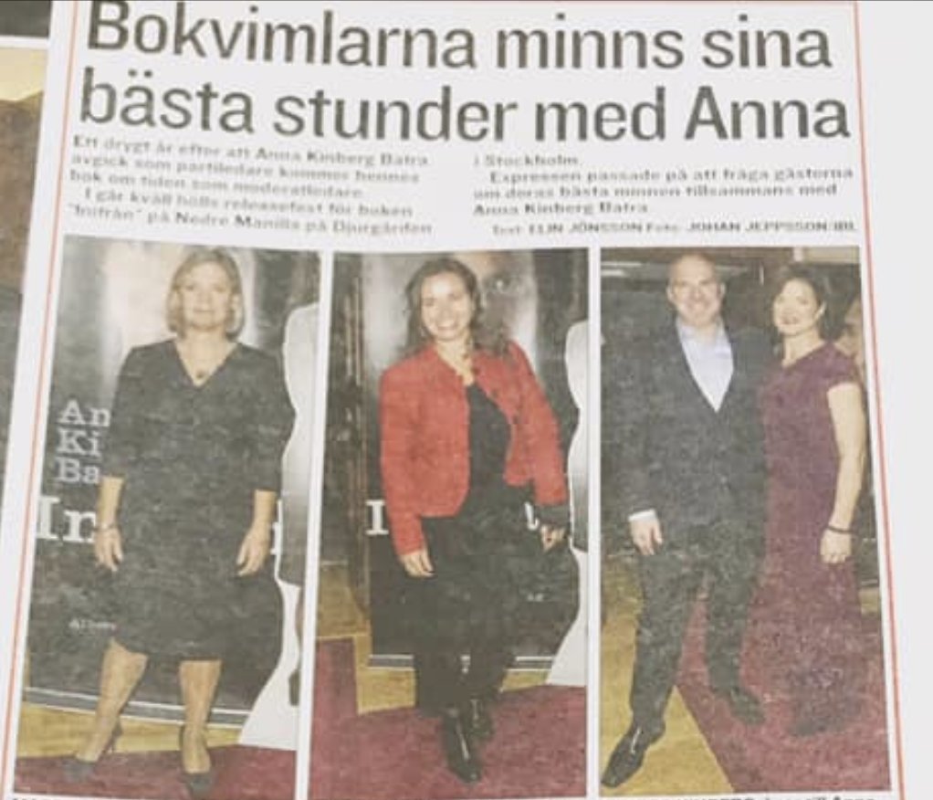 Sådant här är fint. Cred till finansministern. "Hon har varit en rättfram och hederlig person. De gånger jag har debatterat med henne har det varit bra och givande debatter" - Magdalena Andersson (S) på @KinbergBatra:s bok-release av #inifrånAKB Ur @Expressen idag.pic.twitter.com/IKxniPn7eB